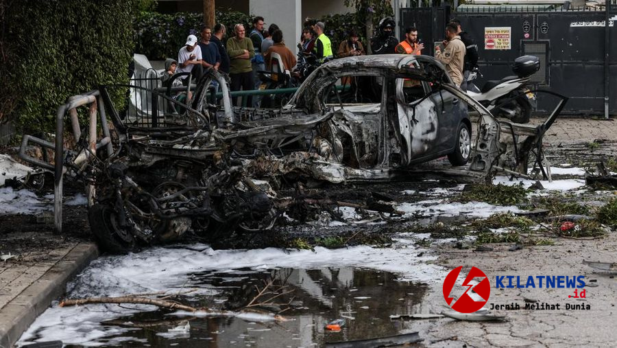 Serangan rudal tersebut menghantam kawasan padat di Israel tengah. Dampaknya sangat terasa: bangunan mengalami kerusakan parah dan sejumlah kendaraan terbakar hingga hangus.